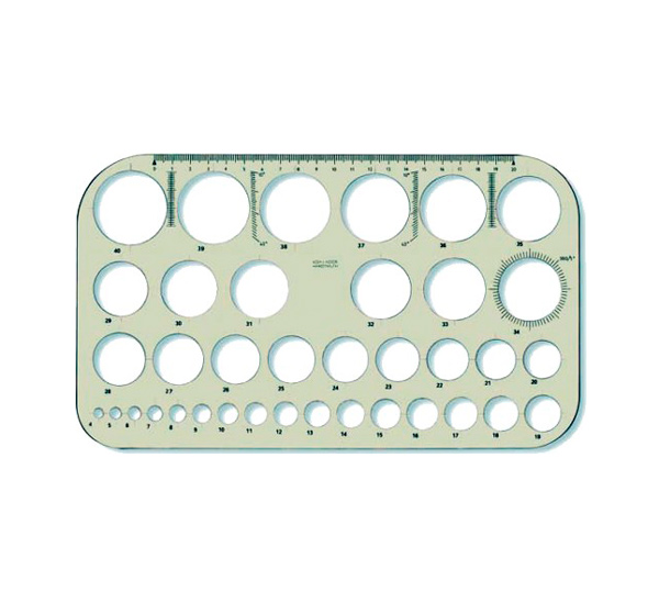 Шаблон предназначен для чертежных работ. Изготовлен из высококачественного износоустойчивого пластика светло-коричневого "дымчатого" оттенка. Не ломается даже если сильно на него нажмешь. Шаблон включает в себя круги разного диаметра. Также его можно использовать как многофункциональную линейку благодаря нанесенной измерительной шкале на одной стороне.