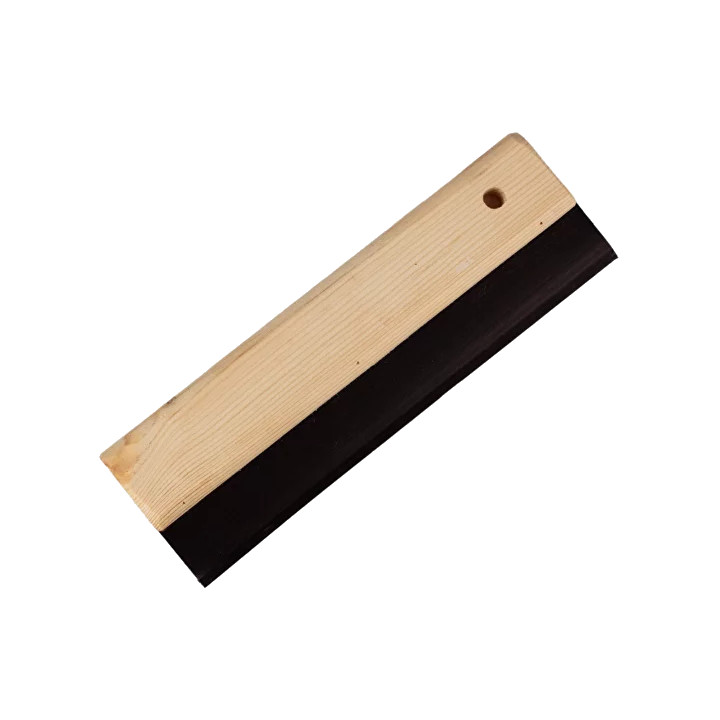 Ракель — это своего рода шпатель или скребок при помощи которого наносится краска в технике шелкографии. Ракель имеет размеры удобные для работы с рамой и подбирается под размер трафарета.