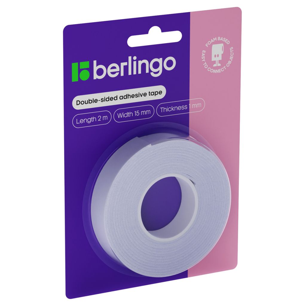 Двусторонняя лента Berlingo общего назначения позволяет быстро и легко выполнить соединие предметов из металла, пластика, стекла, керамики, дерева и т.д. Предназначена для работы с неровными и шероховатыми поверхностями, не оставляет следов.
