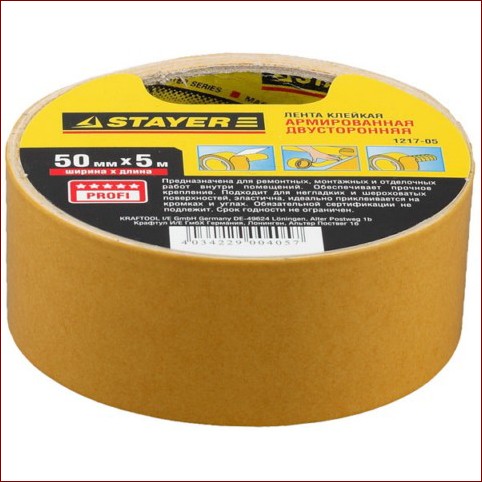 Клеящая двухсторонняя лента 1217-10 Stayer серии "PROFI" применяется в производственных и бытовых условиях. Главной особенностью ленты является тканевое волокно, на которое с обеих сторон нанесен клей из каучука. Обеспечивает надежное крепление и широко используется для любых элементов из бумаги, картона, резины, пластика и т.д. Гораздо более функциональна, чем лента с одной клеящей стороной. Подходит для использования при температуре не выше +60°С.