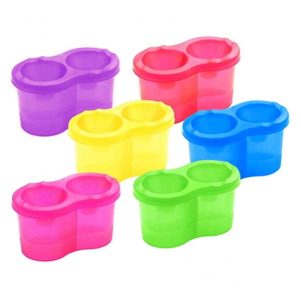 Двойной стакан-непроливайка «ГАММА »предназначен для промывания кистей в процессе рисования. Ассорти из 6 неоновых цветов: зелёный, жёлтый, голубой, розовый, пурпурный, фиолетовый. Стакан изготовлен из полипропилена и представлен в объёме 2*175 мл. Специальная линия – метка безопасного уровня воды указывает на оптимальный уровень наполнения стакана водой. Цвет товара представлен без возможности выбора цвета, он будет случайным.