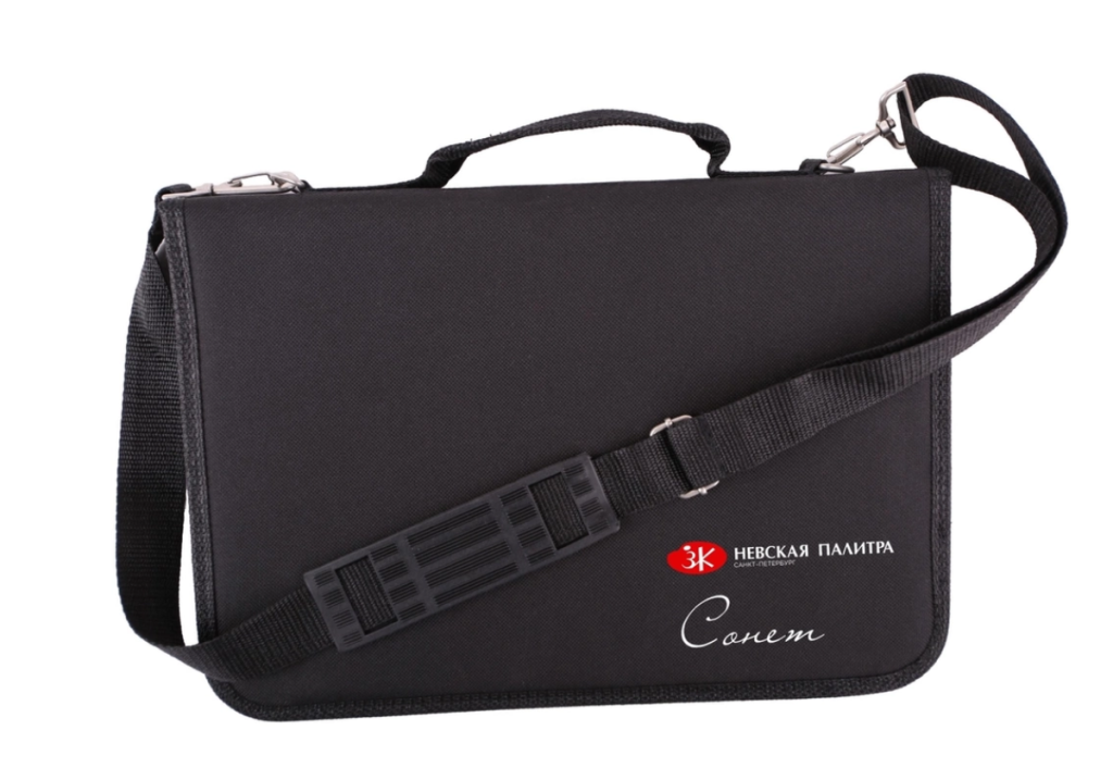 Удобная и практичная сумка "Сонет" с внутренними карманами и регулируемым ремнём. Сумка идеально подходит для переноски художественных принадлежностей и бумаги формата А4. Внутренний органайзер предназначен для удобной переноски кистей, красок, палитр и других аксессуаров. Размер сумки: 350х240х45 мм.