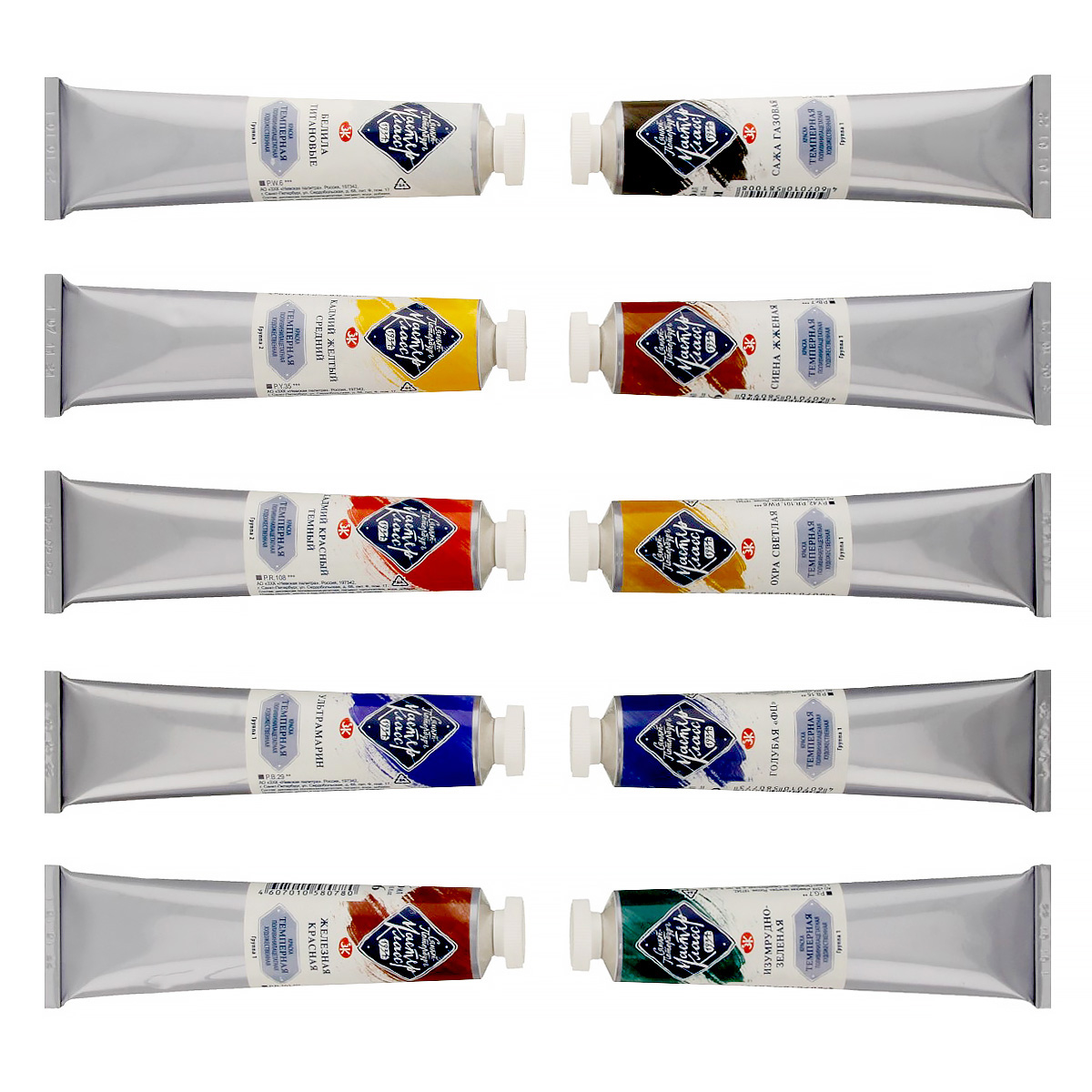 Темперная краска ПВА «Мастер-класс» изготавливается заводом художественных красок Невская палитра, расположенным в городе Санкт-Петербурге. Завод уже более 80 лет выпускает продукцию для профессиональных художников и любителей творчества. Темпера «Мастер-класс» изготавливается из пигментов высокого качества и поливинилацетатной дисперсии (ПВА). Темпера ПВА «Мастер-класс» - эластичная и прочная краска. Применяется в живописи, графике и декоративно-прикладном искусстве. Легко наносится на бумагу, дерево и картон. Все цвета, представленные в данной серии, укрывистые. Поверхность произведений, выполненных темперой, матовая и бархатистая. Темпера ПВА «Мастер-класс» представлена в палитре из 23 цветов, которые предлагаются поштучно в тубах по 46 миллилитров и в наборах по 10 и 12 цветов.