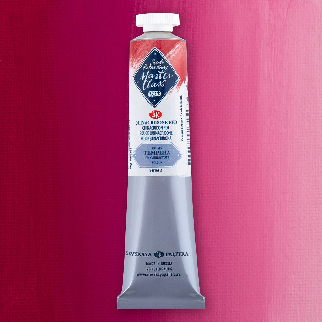 Темпера ПВА «Мастер-класс» изготавливается заводом художественных красок Невская палитра, расположенным в городе Санкт-Петербурге. Завод уже более 80 лет выпускает продукцию для профессиональных художников и любителей творчества. Темпера «Мастер-класс» изготавливается из пигментов высокого качества и поливинилацетатной дисперсии (ПВА). Темпера ПВА «Мастер-класс» - эластичная и прочная краска. Применяется в живописи, графике и декоративно-прикладном искусстве. Легко наносится на бумагу, дерево и картон. Все цвета, представленные в данной серии, укрывистые. Поверхность произведений, выполненных темперой, матовая и бархатистая. Темпера ПВА «Мастер-класс» представлена в палитре из 23 цветов, которые предлагаются поштучно в тубах по 46 миллилитров и в наборах по 10 и 12 цветов.