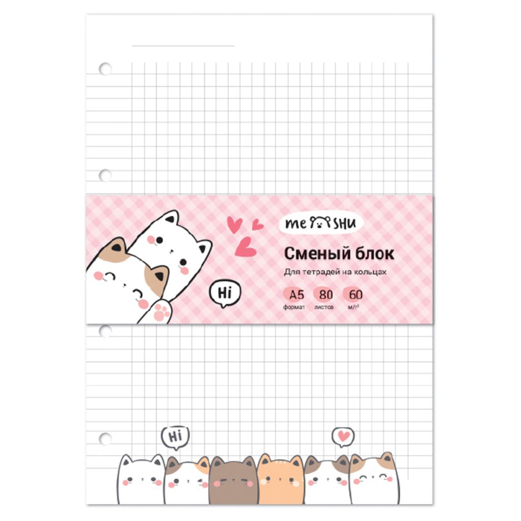 Сменный блок для тетрадей с кольцевыми механизмами. Формат А5, 80 листов. Офсетная бумага плотность 60 г/м? в точку, с дизайнерским блоком. Листы скреплены стрип-лентой и так же упакованы в т/у пленку. Цветной дизайн блока и линовка в точку поднимет настроение, и ваша тетрадь станет незаменимым помощником в повседневных делах.