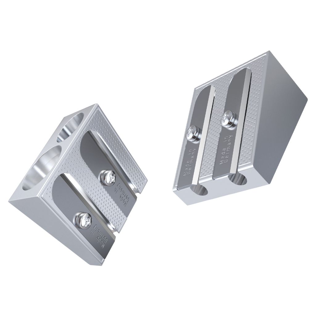 Металлическая точилка Berlingo из магниевого сплава. Лезвие из углеродистой стали, острое и устойчивое к повреждению, сделано в Германии. Два отверстия для заточки - обычных и утолщенных карандашей. Эргономичная форма. Идеально подходит для графитовых и цветных карандашей. Цена указана за 1 штуку.