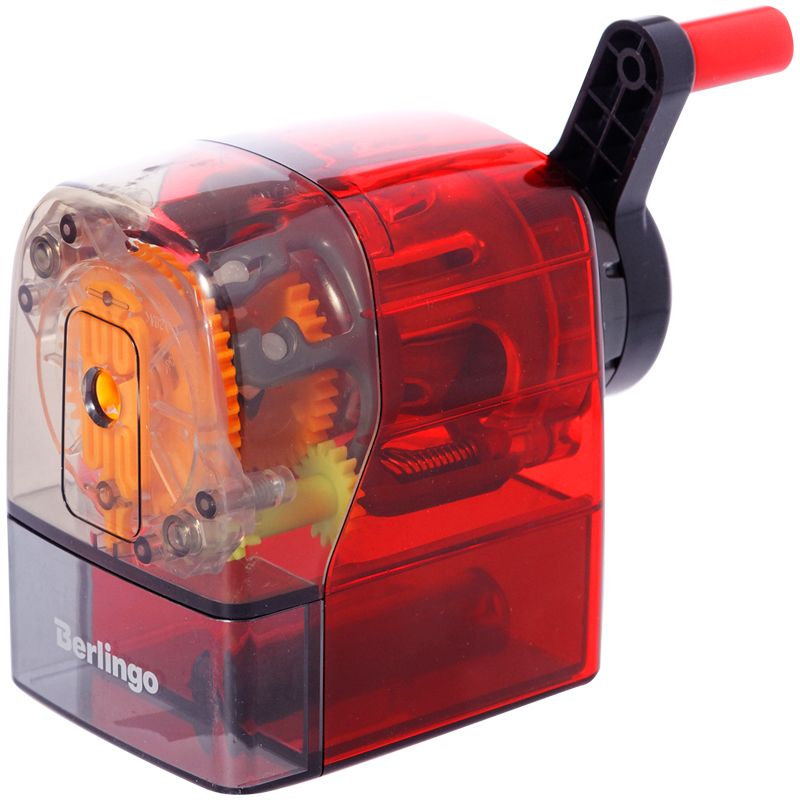 Настольная механическая точилка Berlingo Mega Top. Цвет корпуса красный. Особая конструкция механизма обеспечивает быструю и острую заточку карандаша, предотвращает грифель от поломок в процессе заточки. Уникальная технология самоизвлечения карандаша после окончания заточки - достаточно только продолжать вращать ручку до полного извлечения. Защита от застревания грифеля в механизме. Полупрозрачный корпус. Струбцина для крепления к столу в комплекте.