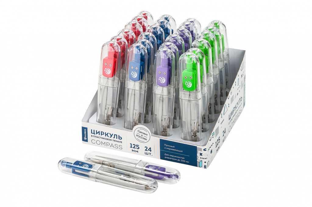 Циркуль литой, окрашенный, латунная карандашная вставка. Длина — 125 мм. Идеально подойдет для средних классов. Благодаря индивидуальному пеналу, защищен от ударов и повреждений во время транспортировки. Циркуль сохраняется исправным продолжительное время. Максимальный диаметр окружности 280 мм. Для этого товара отсутствует возможность выбора цвета корпуса, он будет случайным. Цена указана за 1 единицу товара.