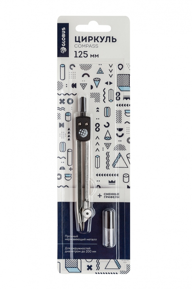 Набор чертежный, серия Junior. В наборе 2 предмета: циркуль чертежный, длина 125 мм, нержавеющий металл; пенал с запасным грифелем. Максимальный диаметр окружности 280 мм.