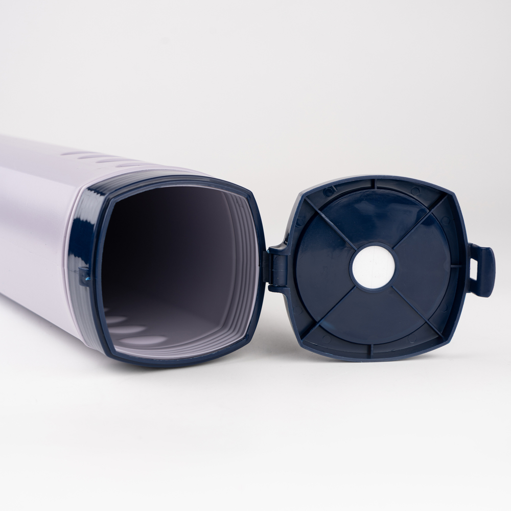 Пластиковый телескопический тубус диаметром 9 см. предназначен для переноски работ на бумаге большого формата в свернутом в рулон виде. Раздвижная конструкция тубуса обеспечивает компактность, универсальность и удобство, в сложенном виде его длина составляет 63 см., в разложенном — 103 см. На крышке тубуса предусмотрено место для персонализации владельцем, а регулируемый по длине ремень предполагает максимальное удобство в процессе переноски.