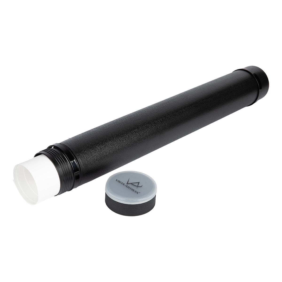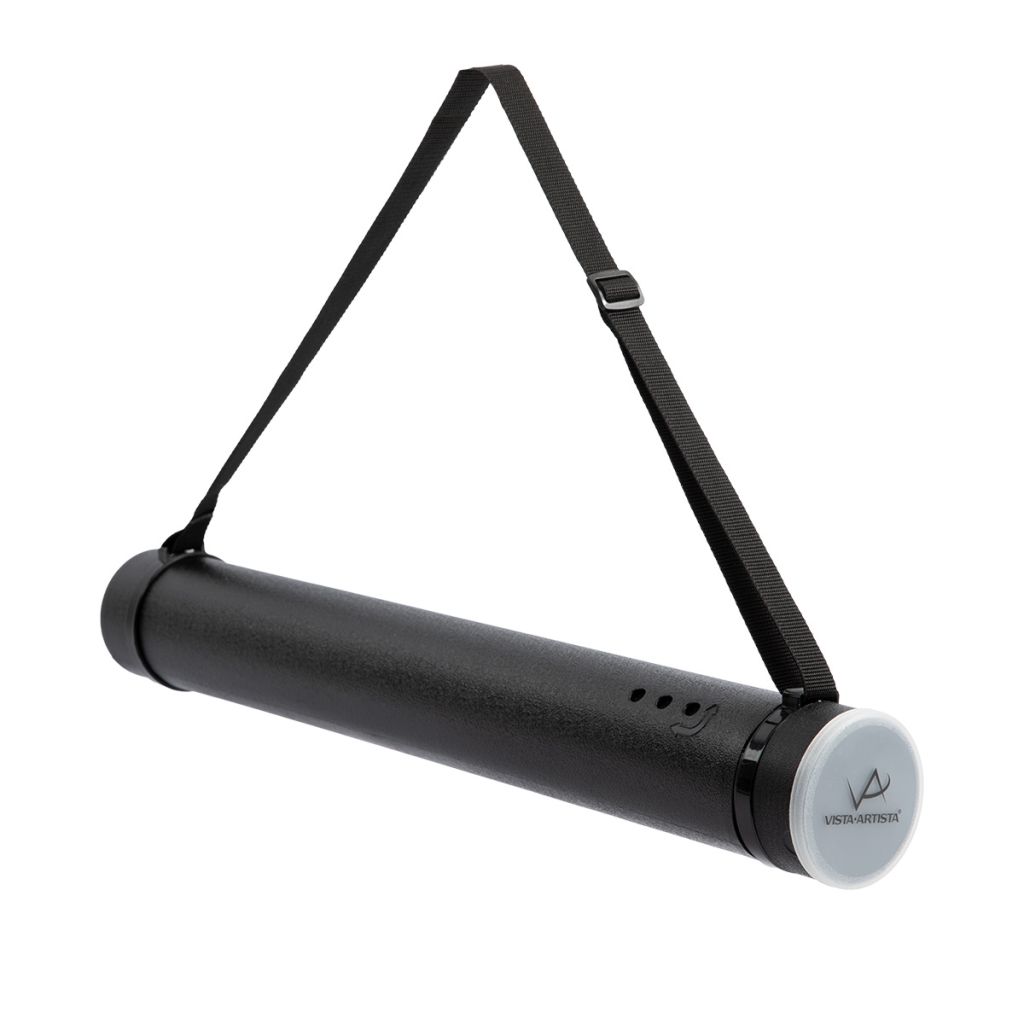 Телескопический тубус на ремне от бренда VISTA-ARTISTA предназначен для безопасной транспортировки больших форматов бумаги, чертежей и рисунков. Он выполнен из прочного пластика и регулируется по высоте, что позволяет легко подстраивать его под размер содержимого — длина тубуса варьируется от 63 см до 100 см.