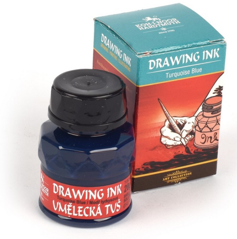 KOH-I-NOOR HARDTMUTH – самый известный чешский производитель принадлежностей для рисования, канцелярских товаров и товаров для творчества. Компания получила название в честь алмаза «Кохинор» и была основана в 1790 году. Тушь на шеллачной основе, выпускаемая компанией KOH-I-NOOR («Кохин?р»), содержит качественные мелко тертые пигменты. Тушь предназначена для любительского и профессионального использования. Широко применяется в графических, художественных работах, каллиграфии и черчении. Обладает глубоким, ярким, насыщенным цветом и блеском. Перед использованием тушь рекомендуется хорошо взболтать. Благодаря своей структуре она хорошо наносится на различные виды бумаги и картона. Для нанесения рекомендуется использовать перо или кисть. После высыхания тушь образует влагостойкую пленку. Для заправки в рапидографы и изографы не подходит. Тушь на шеллачной основе выпускается в баночках по 20 миллилитров, которые упакованы в картонную коробку. представлено 14 разнообразных цветов, среди которых золотой и серебряный.