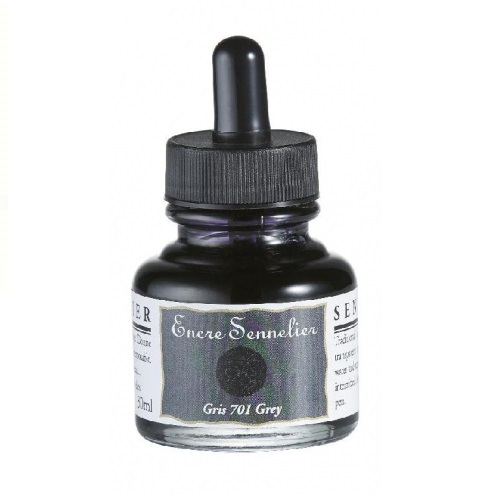 О серии: тушь Sennelier изготавливается из лучших материалов, проверенных временем. Для изготовления используются максимально возможна концентрация светостойких пигментов в растворе с добавлением шеллачной смолы. Тушь обладает глубоко насыщенным цветом, шеллаковая основа придает туши уникальный бриллиантовый, яркий и интенсивный цвет, позволяет наносить четкие глянцевые линии. Тушь быстро сохнет и в высшей степени устойчива к воде, при этом не является несмываемой. Рисунок тушью можно закрепить фиксативом для карандаша или пастели, что только увеличит светостойкость красок. Характеристика: хорошо ложится на поверхность образуя атласный блеск. Быстросохнущая и водостойкая. При необходимости все цвета серии можно смешивать между собой. Применение: используется в каллиграфических и графических работах. Наносится пером или кистью. Можно использовать в качестве контура под акварельную живопись или в качестве жидкой акварели. Производство: производится французской компанией Sennelier. Начало ее заложил Гюстав Сеннель? (Gustave Sennelier) в 1887 году, когда стал задумываться о собственном производстве высококачественных красок и выкупил для себя художественный магазин. На сегодняшний день компания производит все виды красок для творчества.