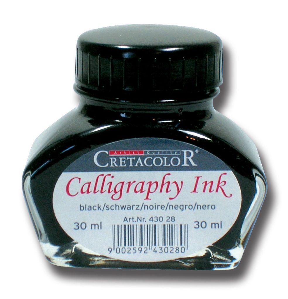 Жидкая тушь для для каллиграфии в традиционном стеклянном флаконе - Cretacolor Calligraphy Ink. Насыщенный черный цвет. Разработана специально для каллиграфических работ и рисования. После высыхания надписи, сделанные этой тушью, становятся влаго- и светоустойчивыми. В качестве инструмента можно использовать кисти для каллиграфии и погружные перья для каллиграфии.