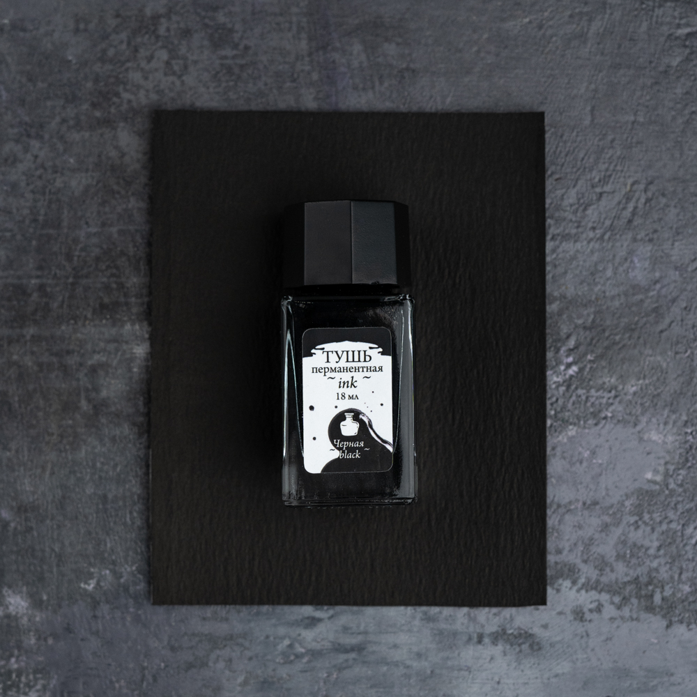 Перманентная тушь для рисования и каллиграфии от бренда «Малевичъ». Плотная, яркая быстросохнущая тушь не размывается водой после высыхания. Хорошо подойдет для любителей скетчинга. После высыхания рисунок остается четким и ярким. Можно совмещать с акварелью. Тушь «Малевичъ» не обладают высокой светостойкостью, поэтому для сохранности работ лучше использовать тушь в скетчбуках или сканировать готовые работы. Во время работы баночку следует закрывать, отливая некоторое количество чернил в чернильницу. После использования перья следует сразу тщательно очистить специальными составами, спиртом или промыть под проточной водой. После воды перья следует тщательно вытереть салфеткой и оставить просохнуть. Тушь не рекомендуется заправлять в перьевые ручки и кисти с резервуаром. Широкая палитра цветной туши «Малевичъ» даёт возможность разнообразить работы, привнести что-то новое в своё творчество. В серии представлено 17 различных цветов туши для каллиграфии и рисования. Состав: пигмент, вода, диэтиленгликоль, функциональные добавки.