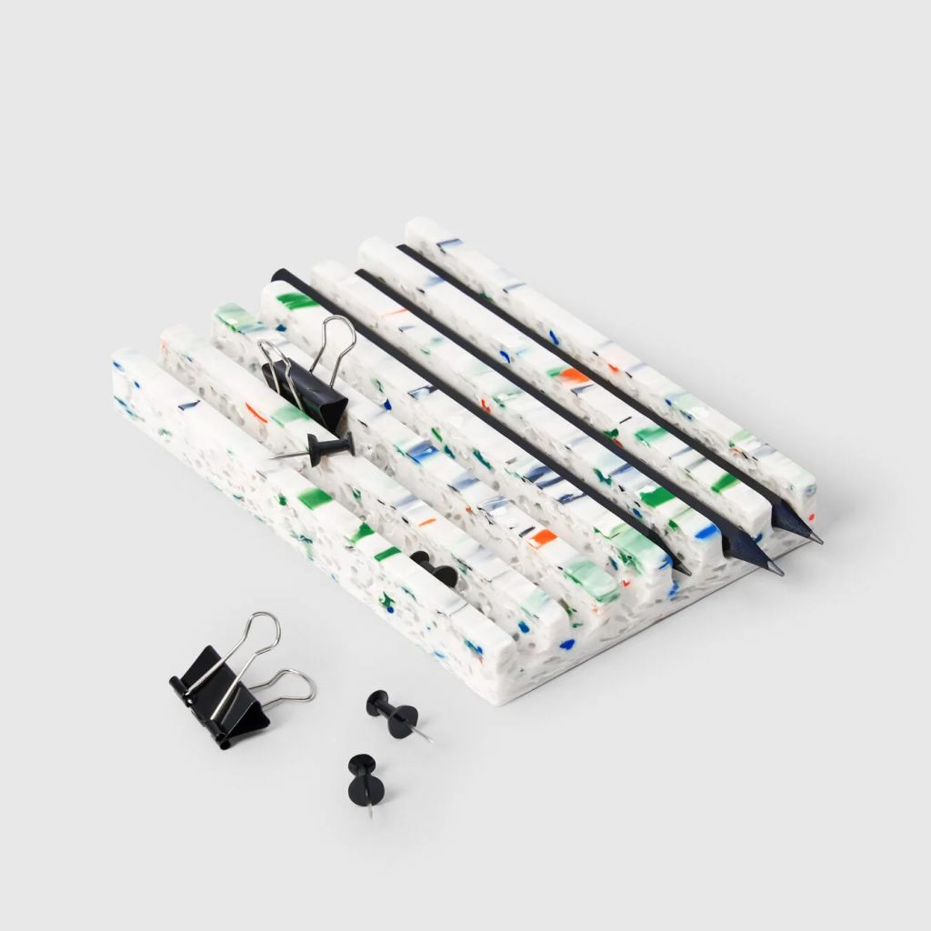 Настольный органайзер идеально подходит для хранения канцтоваров, кистей для рисования и аксессуаров для макияжа. Подойдет для офисного и домашнего интерьера. Также органайзер можно использовать в качестве мыльницы. Влагостойкая и долговечная. Все предметы сделаны из переработанного пластика, и поэтому — уникальны. Каждое изделие может отличаться по цвету от варианта на фото. Изделие может быть повторно переработано. Материал изделия: 100% переработанный HDPE-пластик.