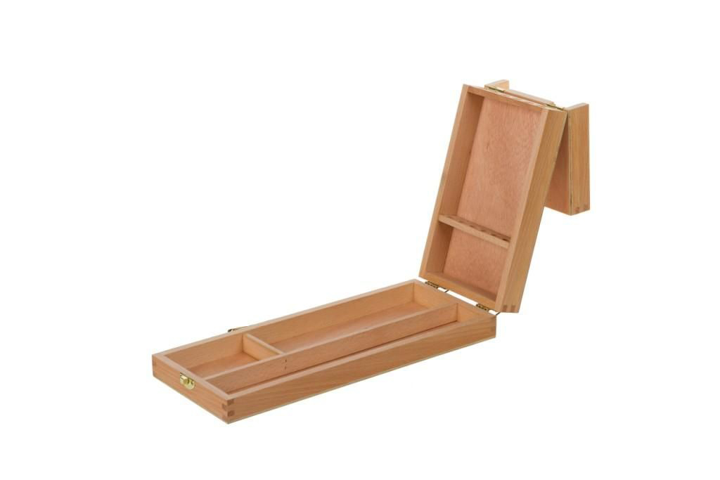 Ящик художника — незаменимый аксессуар для хранения и транспортировки художественных принадлежностей, а так же практичный вариант для поддержания рабочего места в чистоте и порядке. В таком ящике можно хранить кисти, мастихины, краски, карандаши прочие инструменты и аксессуары художника. Все ящики Pinax выполнены из промасленного бука с использованием надежных креплений. Данная модель оснащена 3-мя секциями для хранения художественных принадлежностей, а так же специальным отделением для хранения кистей на длинной ручке. Размер ящика 35х14х5,7 см., вес 0,59 кг.