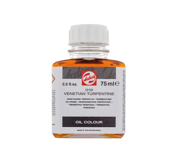 Терпентин Венецианский Talens. Применяется для повышения текучести и прозрачности масляных красок. Увеличивает время высыхания красок. Слегка желтеет. Может быть разбавлен уайт-спиритом или терпентином. Объем: 75 мл.