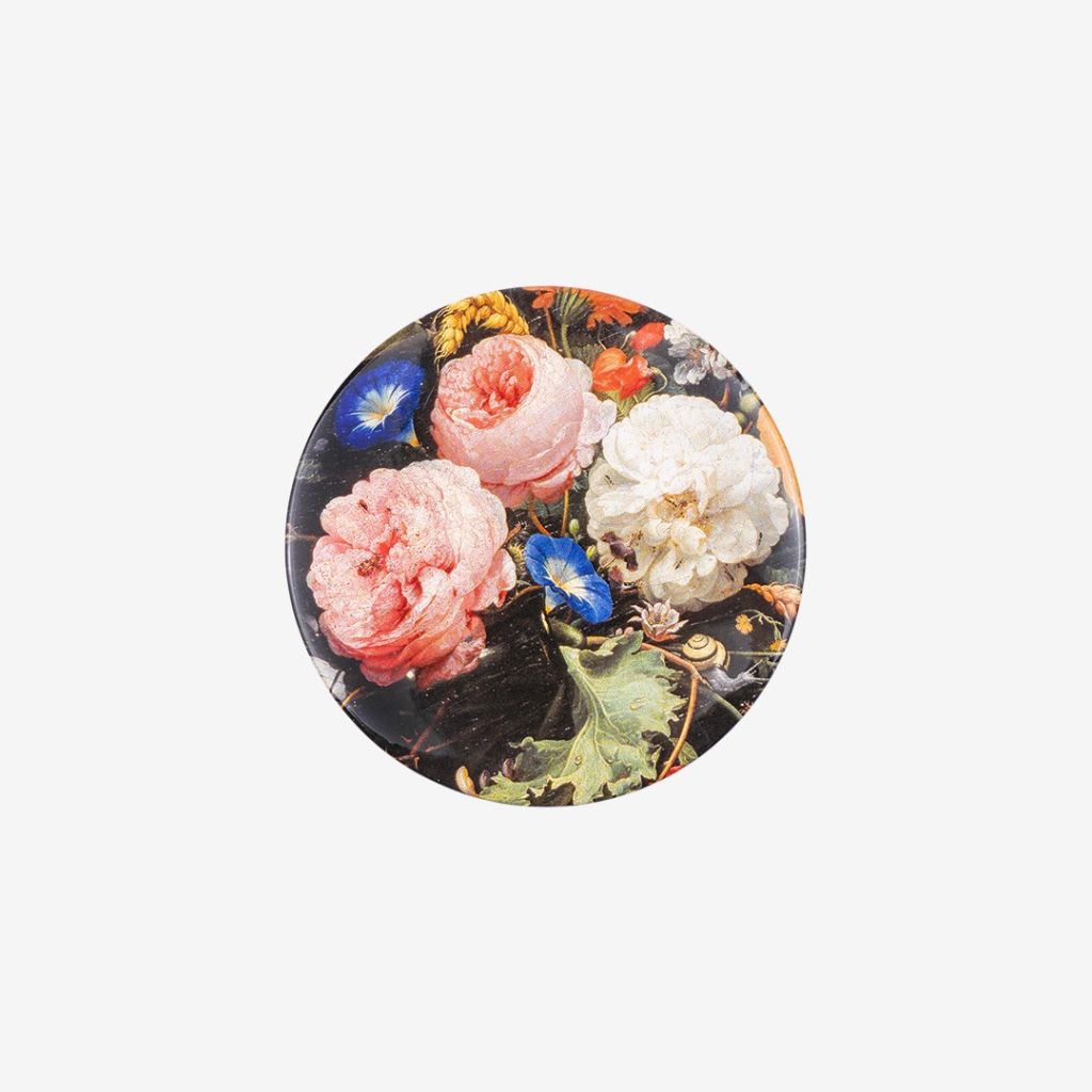 Сувенирная коллекция аксессуаров "Шедевры живописи" представляет карманное зеркальце "Цветы в вазе". Оригинальный дизайн зеркала разработан по мотивам знаменитого полотна Яна Давидса де Хема "Цветы в вазе", хранящегося в собрании Государственного Эрмитажа. Тонкий мимолетный мир цветов, созданный мастером голландского натюрморта, обладает невероятным очарованием, свежестью и выразительной красотой. Художник раскрывает красоту каждого цветка, каждого лепестка, тонко прописывая все подобности и детали своего неувядающего натюрморта.Фрагмент знаменитой картины был выбран для создания дизайна карманного зеркальца, которое послужит замечательным аксессуаром в гардеробе любой модницы.