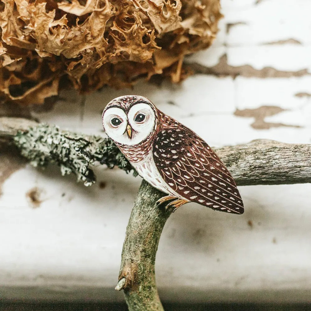 Деревянная брошь с классическим замочком-булавкой на обратной стороне. Брошь выполнена по иллюстрации независимой художницы Александры Дворниковой из Санкт-Петербурга. Работы Александры, вдохновлённые бесконечной любовью к природе, красотой леса и знакомыми с детства сказками, нашли своё новое гармоничное воплощение в повседневных аксессуарах PlantMyBones для вас и вашего дома.