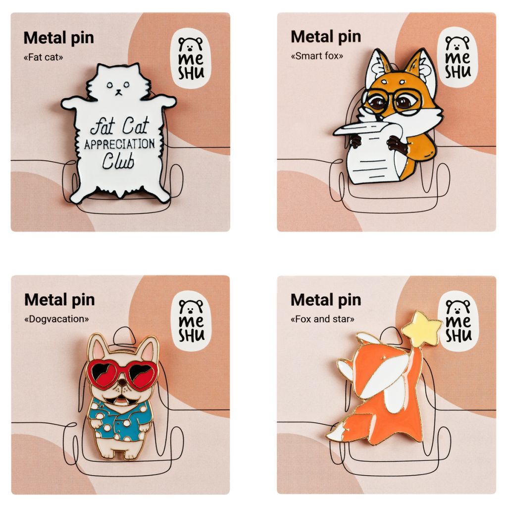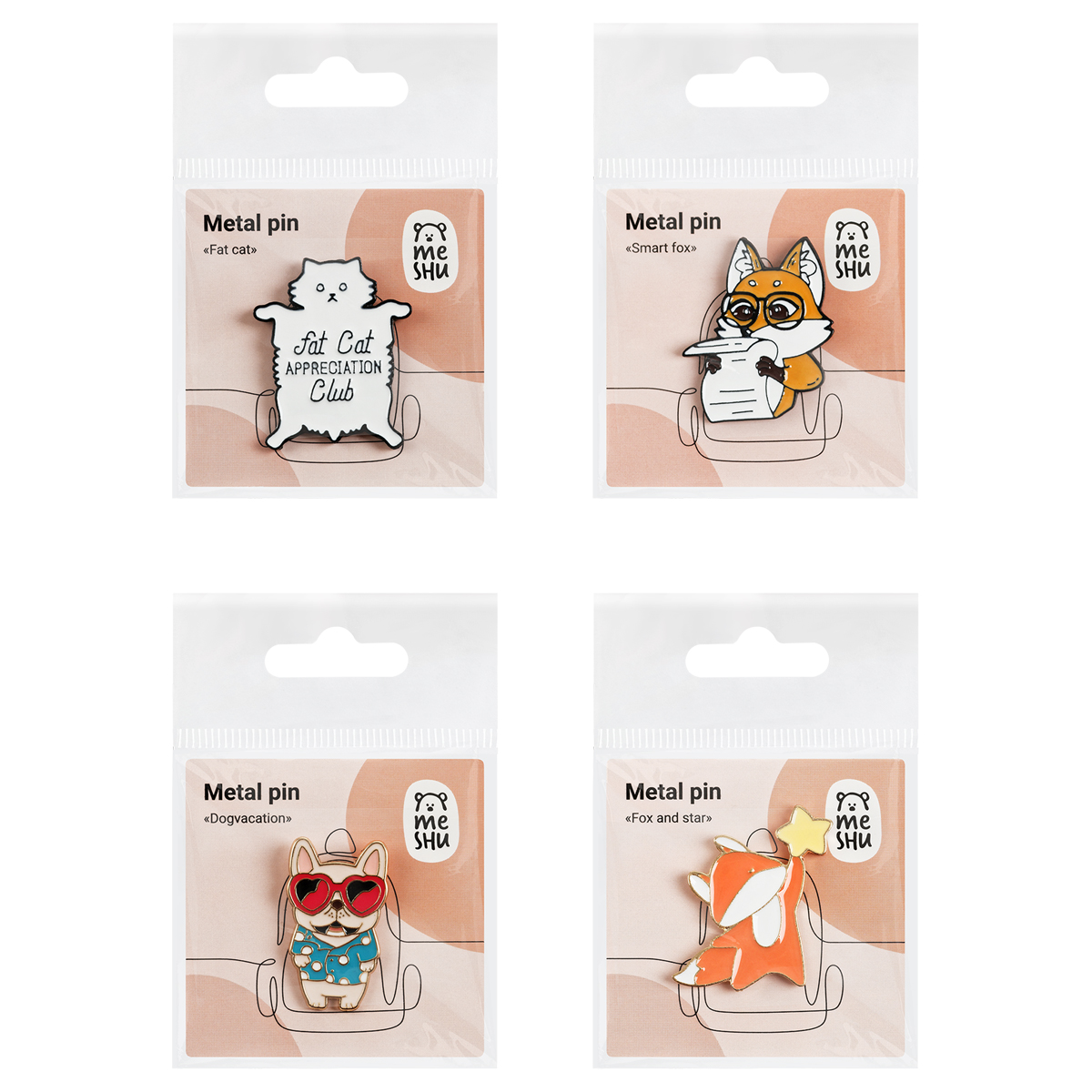 Набор металлических значков от MESHU – оригинальный и модный аксессуар, который преобразит любую вещь. В наборе 4 значка. Застёжка-бабочка позволяет значку надёжно держаться. Эти забавные значки созданы специально, чтобы поднимать настроение своему обладателю.
