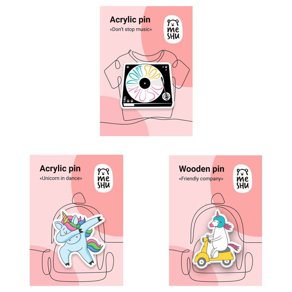 Набор акриловых значков MESHU – оригинальный и модный аксессуар, который преобразит любую вещь. В наборе 3 значка. Застежка-булавка позволяет значку надёжно держаться. Эти забавные значки созданы специально, чтобы поднимать настроение своему обладателю.