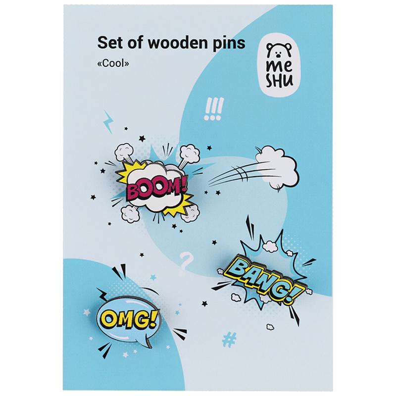 Набор деревянных значков MESHU — оригинальный и модный аксессуар, который преобразит любую вещь. В наборе 3 значка разных размеров. Крепление булавка гарантирует, что значок не отстегнётся случайно и не потеряется Изображение нанесено с помощью УФ-печати, что обеспечивает чёткость и долговечность рисунка.