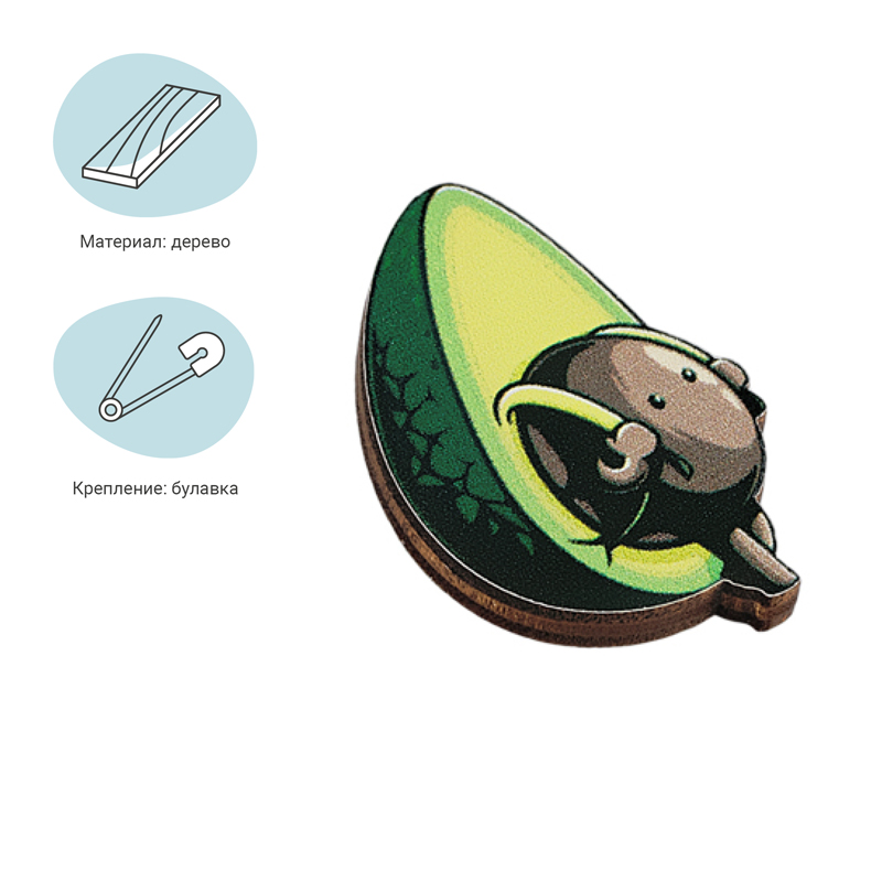 Значок из дерева MESHU Avocado – оригинальный и модный аксессуар, который преобразит любую вещь. Крепление – булавка, которое позволяет значку надёжно держаться. Изображение нанесено с помощью УФ-печати, что обеспечивает чёткость и долговечность рисунка. Этот милый значок с авокадо создан специально, чтобы поднимать настроение своему обладателю! Упакован в индивидуальный пакет с европодвесом.