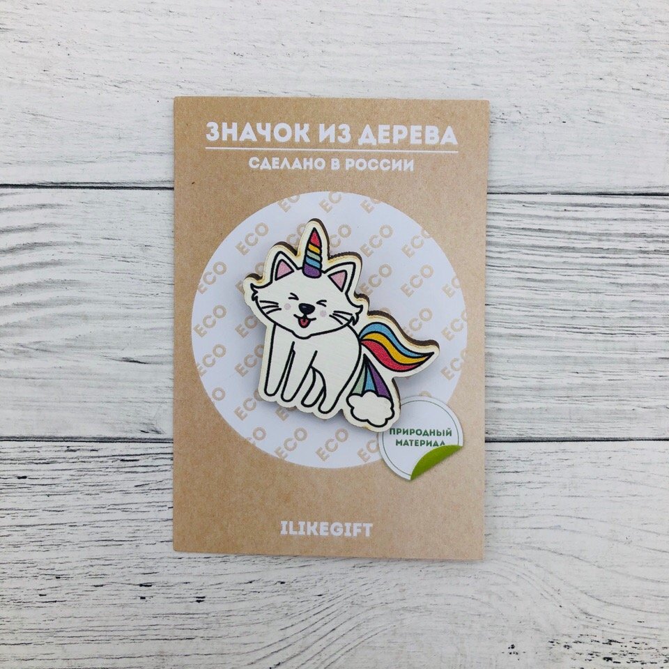 Стильный значок от iLikeGift это отличное дополнение к вашему повседневному образу. Такой значок оригинально украсит лацкан вашего пиджака или пальто, дополнит принт любимого худи или рюкзака. Значок выполнен из дерева с нанесением принта. На тыльной стороне надежная застёжка в виде английской булавки.