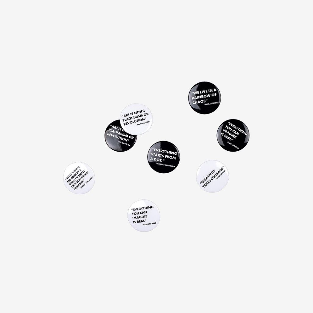 Значки с цитатами Кандинского, Пикассо, Гауди, да Винчи, Матисса и Сезанна не только подчеркнут ваше увлечение искусством, но и вполне потянут на девиз жизни и творчества — эти значки действительно имеют значение! Дизайн значков представлен без возможности выбора.