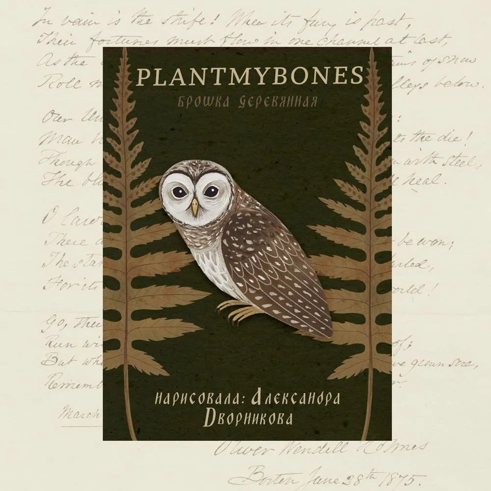 Деревянная брошь с классическим замочком-булавкой на обратной стороне. Брошь выполнена по иллюстрации независимой художницы Александры Дворниковой из Санкт-Петербурга. Работы Александры, вдохновлённые бесконечной любовью к природе, красотой леса и знакомыми с детства сказками, нашли своё новое гармоничное воплощение в повседневных аксессуарах PlantMyBones для вас и вашего дома.