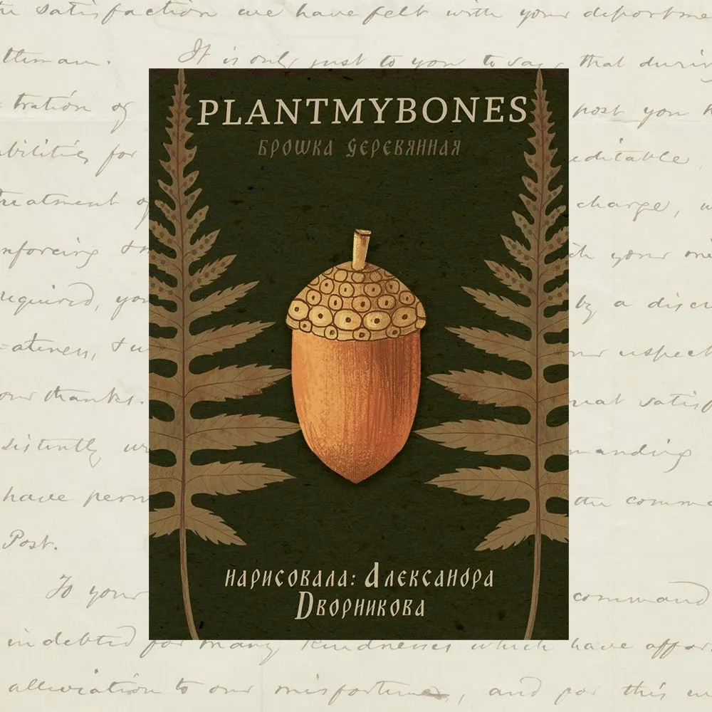 Деревянная брошь с классическим замочком-булавкой на обратной стороне. Брошь выполнена по иллюстрации независимой художницы Александры Дворниковой из Санкт-Петербурга. Работы Александры, вдохновленные бесконечной любовью к природе, красотой леса и знакомыми с детства сказками, нашли своё новое гармоничное воплощение в повседневных аксессуарах PlantMyBones для вас и вашего дома.