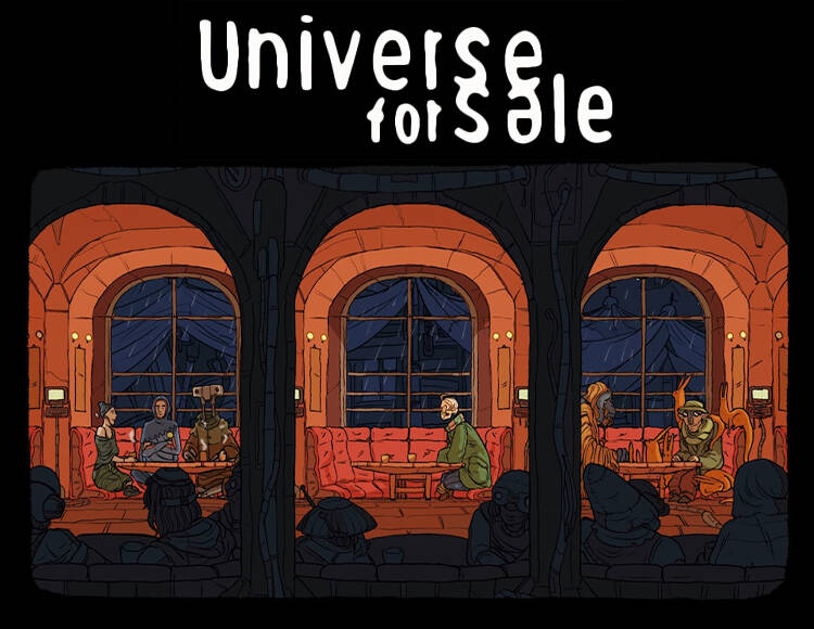 Universe for Sale — приключение в густых облаках Юпитера, нарисованное от руки. Здесь разумные орангутаны подрабатывают в порту, а загадочные сектанты избавляются от собственной плоти, чтобы достичь просветления. Исследуйте каждый закуток этой обветшалой колонии на Юпитере. Среди живописных бараков, выросших вокруг заброшенной шахты, приютились разваливающиеся чайные дома, торговцы всякой всячиной и перегруженные мастерские. Каждая новая встреча, будь то с человеком, обезьяной, скелетом или роботом, сулит новые истории о том, как все они отчаянно пытаются пережить кислотный дождь.