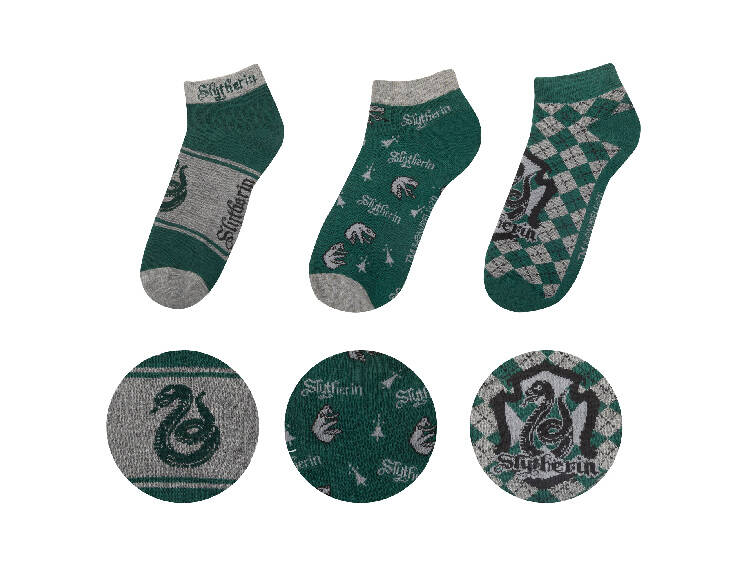 Эти три пары носков с эмблемами Слизерина и в узнаваемой серебряно-зеленой расцветке отлично дополнят гардероб и украсят собой комнату любого поклонника Гарри Поттера, а еще их можно дарить домашним эльфам, неся им освобождение и радость.