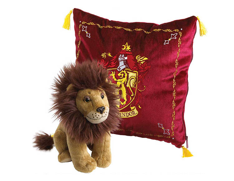 ехол для подушки с вышитым гербом факультета Гриффиндор. Внутри находится плюшевый лев - талисман одного из самых известных факультетов вселенной Гарри Поттера. На красной бархатистой ткани чехла вышит герб Гриффиндора, а углы украшены кисточками, подчеркивающими львиную смелость. Если открыть молнию, то в логове из красного шелка можно найти талисман факультета – гриффиндорского плюшевого льва! Это невероятно уютный подарок для поклонников Гарри Поттера, преданных факультету Гриффиндор.