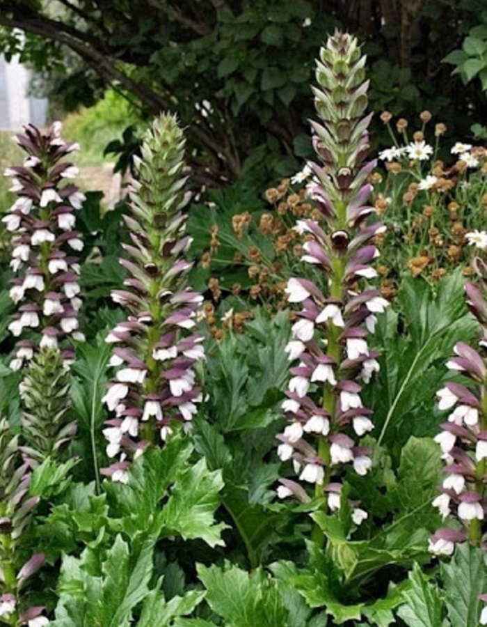 Эффектное многолетнее растение с крупными, глубоко рассеченными, блестящими темно-зелеными листьями, формирующими мощную прикорневую розетку, и высокими соцветиями сиреневых или белых цветков, напоминающими колосья, с характерными колючими прицветниками, привлекающий внимание своей фактурой и способный украсить сад в полутени или на солнце. Растение родом из Средиземноморья, неприхотливо, но любит влажные, плодородные, хорошо дренированные почвы. Зимостойкость до -15°C. В холодных регионах корни требуют укрытия мульчей.