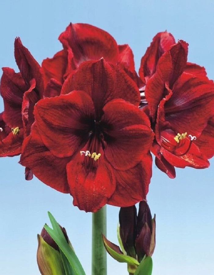 Относится к группе комнатных луковичных цветов. Луковица состоит из короткого утолщенного стебля и сомкнутых замкнутых чешуй, округлая или округло-коническая. Листья линейные длиной 50-70 см. Высота цветка 75 см. Цветки крупные воронковидные или трубчатые. Окрас: темно-красный. Диаметр цветка до 15-20 см. Посадка с ноября по февраль. Цветение: меняя время посадки, можно менять время цветения. Пересадка: примерно раз в 3-4 года, во время периода покоя амариллис пересаживают. Предпочитает легкую, хорошо дренированную почву.