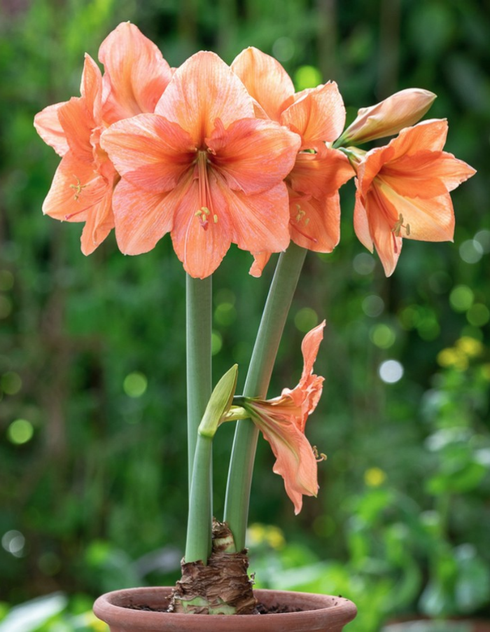Амариллис (или гиппеаструм) Рилона – изысканно цветущее комнатное луковичное растение высотой 50см с листьями изящной вытянутой формы. На цветоносе развивается 5-6 лососевых цветков диаметром до 25см. Зацветает амариллис через месяц-полтора после посадки.