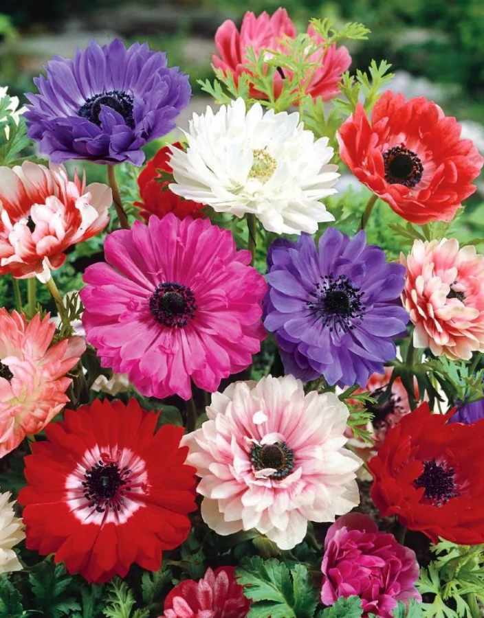 Анемона Микс — травянистый многолетник высотой 30 см с очаровательными махровыми цветками диаметром 8 см. Яркие  цветки на фоне изумрудной листвы великолепно будут смотреться в саду и радовать пышным цветением. Анемона Микс хорошо смотрится в разноцветных букетах, можно использовать для срезки и выгонки, для посадки на клумбах и для оформления альпийских горок. Анемоны — достаточно влаголюбивые растения, требующие регулярного ухода и полива не только во время цветения, но и в период покоя. Для сохранения влаги в жаркое время почву желательно мульчировать торфом или сухими листьями. Самое идеальное место для посадки анемон — полутень. Почву предпочитает рыхлую и плодородную. Перед посадкой клубни замочить на ночь для лучшего прорастания. Почву перекопать на глубину 30 см, внести компост и органоминеральные удобрения. Сажать в сентябре-октябре на глубину 5–10 см, выдерживая расстояние 15 см. Почву слегка придавить. Место посадки обильно полить. Уход заключается в своевременных поливах, рыхлении.