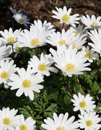 Анемона Уайт Сплендор зацветает в начале мая и цветет около трех недель. Это растение горное, ареал распространения – Кавказ, Балканы и Малая Азия. Предпочитает плодородные влажные известковые почвы. Корневая система ветреницы нежной – бесформенное клубневидное корневище. Из почек его верхней части весной отрастают нежные стебельки высотой 15–20 см с красиво рассеченными листьями. На конце каждого стебелька – одиночное соцветие-корзинка диаметром до 7 см, похожее на цветок ромашки. Кустик растения изящен и воздушен.