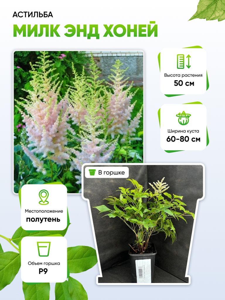 Куст этого вида компактный, его высота составляет 50 см. Эта астильба известна длительностью цветения, которое начинается в июле и заканчивается в сентябре. Этот сорт не только красив, но и известен своей неприхотливостью и способностью с легкостью выдерживать засуху.