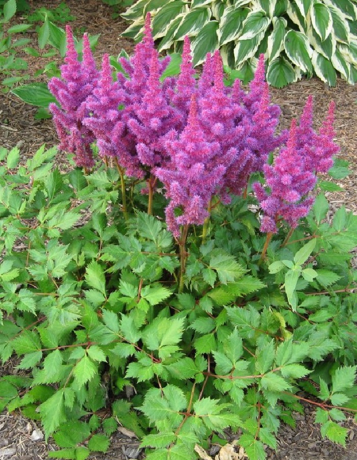 Астильба Арендса Аметист - популярный и выносливый сорт, обильно цветущий ярко-сиреневыми нежными метелками. Цветки собраны в узкое, плотное, метельчатое соцветие до 30 см длиной и 7-10 см в поперечнике. Период цветения растения – июль- август, 20-30 дней. В остальное время декоративность поддерживает блестящая темно-зеленая листва с резными краями. Взрослое растение имеет форму ажурного куста высотой до 1 м. Побеги раскидистые и прямые, окрашены в коричневый оттенок. Сорт обладает иммунной защитой от заболеваний и способен расти и цвести много лет без пересадки.