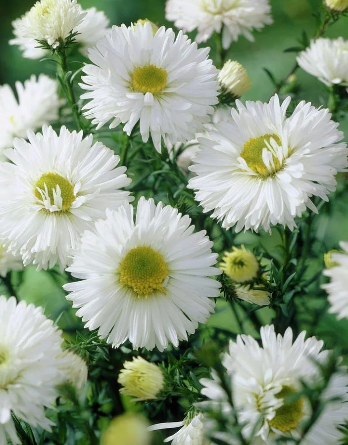 Многолетнее растение. Высота до 40-50 см. Цветы крупные (до 6 см), белоснежные, махровые, цветение очень обильное и продолжительное. Цветет, начиная с конца августа, осенью 25-30 дней.
