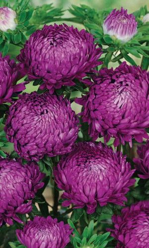 Интенсивное цветение. Привлекательный обильно цветущий куст обратно пирамидальной формы с многочисленными соцветиями высотой до 65 см. Цветоносы прочные длиной 40-45 см. Соцветия махровые, полусферические или шаровидные, фиолетовые, диаметром 8-10 см, до 10 штук на растении. Язычковые цветки прижаты друг к другу и загнуты в середину. Растение предпочитает открытые солнечные места. Цветет обильно с июля по октябрь. Отличаются великолепными срезочными свойствами, до двух недель стоят в воде, сохраняя декоративность. Прекрасно подойдут для оформления цветников и рабаток.