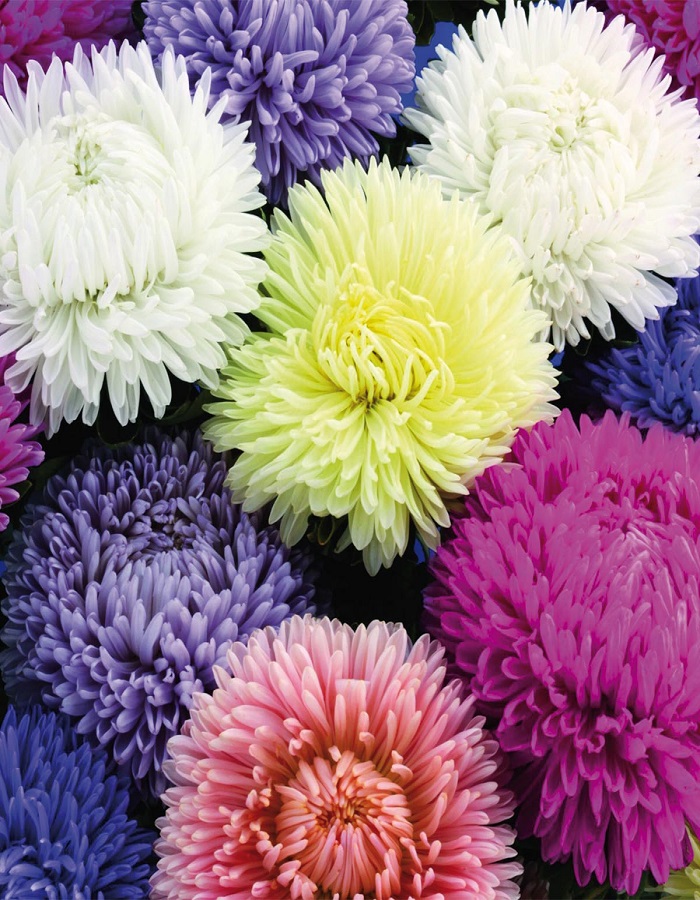 Множество цветоносов. Роскошная серия высоких крупноцветковых астр для выращивания на срезку. Растения пирамидальной формы, с многочисленными соцветиями, высотой 60-70 см. Соцветия плотные, махровые, розовидные, разного цвета, диаметром 10-12 см. Растение предпочитает открытые солнечные места. Цветет обильно с июля по октябрь. Отличаются великолепными срезочными свойствами, до двух недель стоят в воде, сохраняя декоративность. Прекрасно подойдут для оформления цветников и рабаток. Благодаря большому количеству соцветий на одном растении долго сохраняют декоративность при любых погодных условиях.