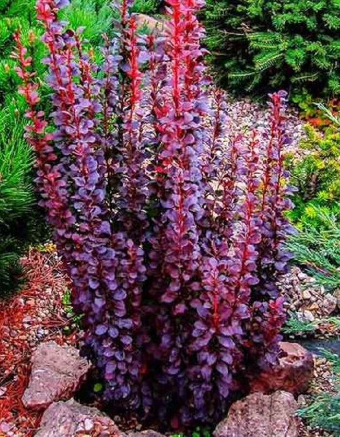 Применение,особенностиБарбарис Тунберга Хелмонд Пиллар представляет собой уникальный декоративный кустарник с потрясающей колонновидной формой. Прекрасно подходит для создания живых изгородей и солитерных посадок.Дерево (куст)Барбарис тунберга Хелмонд Пиллар - листопадный кустарник с густыми вертикальными побегами красного цвета, один из самых темных колоновидных сортов барбариса. Высота 1 - 1,5 м, ширина - 0,4 - 0,6 м. Крона колоновидная.ЛистьяЭтот сорт особенно ценится садоводами за насыщенный пурпурный окрас листвы, который сохраняется в течение всего вегетационного периода. Листья у растения мелкие, пурпурно-красного цвета, от светло-пурпурного весной до темно-пурпурного летом, осенью - багряно-красные.Цветы (соцветия)Распускающиеся в мае ярко-желтые цветы очень эффектно смотрятся на фоне листвы пурпурного цвета. Плоды продолговатые, красные, блестящие, созревают в начале осени.ЗимостойкостьЗимостойкость высокая, до -34 °C.Возраст саженца1 годУсловия выращиванияРастение светолюбивое, морозостойкое и засухоустойчивое, предпочитает дренированные, легкие почвы. Хорошо переносит стрижку и обрезку. Рекомендуется проводить санитарную обрезку рано весной, удаляя обмерзшие побеги. Умеренный темп роста.