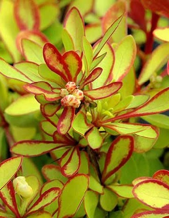 Применение,особенностиИспользуется для создания живых изгородей, бордюров, в древесно-кустарниковых композициях.КустНевысокий кустарник высотой 0,5-0,7м.Форма куста раскидистая, округлая.ЛистьяЛистья мелкие, с изменяющейся окраской, весной нежно-розовые с красной каймой, летом имеют ярко желтую окраску, осенью становятся оранжевыми.Цветы/соцветияЦветки небольшие, мало декоративные.ЗимостойкостьЗимостойкость средняя, до -29 °C.Возраст саженца1 годУсловия выращиванияДля посадки лучше всего подходят солнечные участки, но растение также переносит легкое затенение. Почва должна быть легкой, питательной с высоким уровнем кислотности.