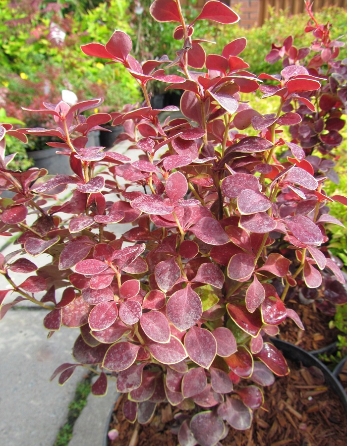 Применение,особенностиИспользуется для создания живых изгородей, бордюров.КустКуст густой, распростёртый, высотой до 100 см.ЛистьяЛистья тёмно-розовые с жёлтой каймой.Цветы/соцветияЦветет в мае. Цветки маленькие жёлтые. Плоды продолговатые, красные, долго остаются на кустах.ЗимостойкостьЗимостойкость средняя, до -29 °C.Возраст саженца1 годУсловия выращиванияПредпочитает солнечные места, Зимостойкий сорт.