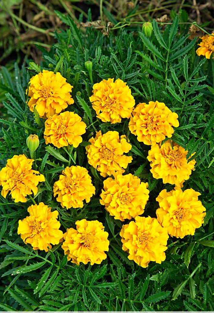 Низкорослые ,яркие.Однолетнее растение высотой 20-25 см. Куст раскидистый и ветвистый. Соцветия крупные, диаметром 3-4 см, махровые, золотисто- желтого цвета. Растение свето- и теплолюбивое, предпочитает солнечные места, не переносит заморозков. Обильно цветет с июня по сентябрь. Используют для клумб, рабаток, бордюров и балконов.