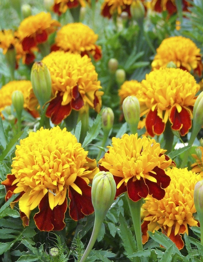 Необычные соцветия. Компактное растение, высотой до 25 см. Центральные соцветия состоят из крупных оранжевых лепестков, уложенных в виде завитков. По краю соцветия расположены язычковые лепестки темно-бордового цвета. Диаметр цветка 5-6 см. Растение свето- и теплолюбивое, предпочитает солнечные места, не выносит заморозков. Обильно цветет с июня по сентябрь. Используют для клумб, рабаток, бордюров и балконов.